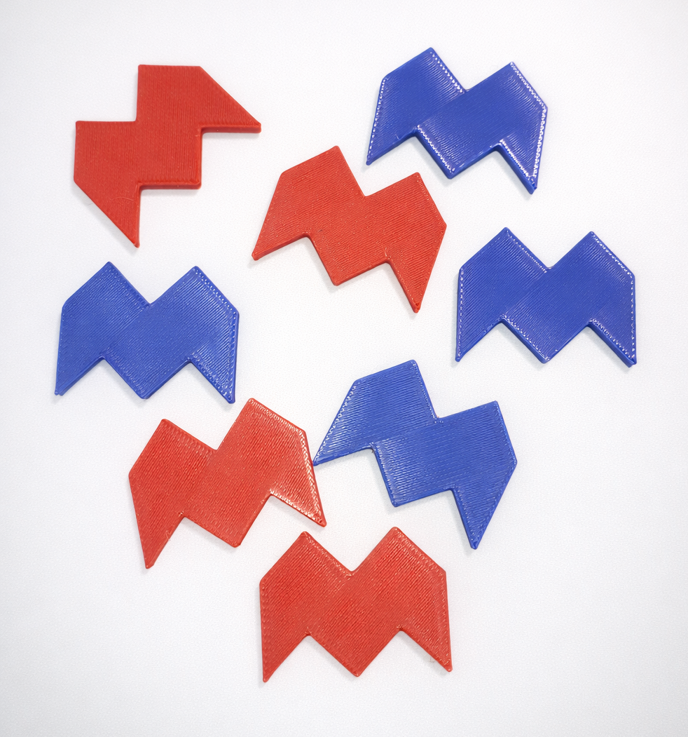 4 piezas rojas y 4 azules, de 3,5 cm de largo, usados para realizar pruebas Ados 2.